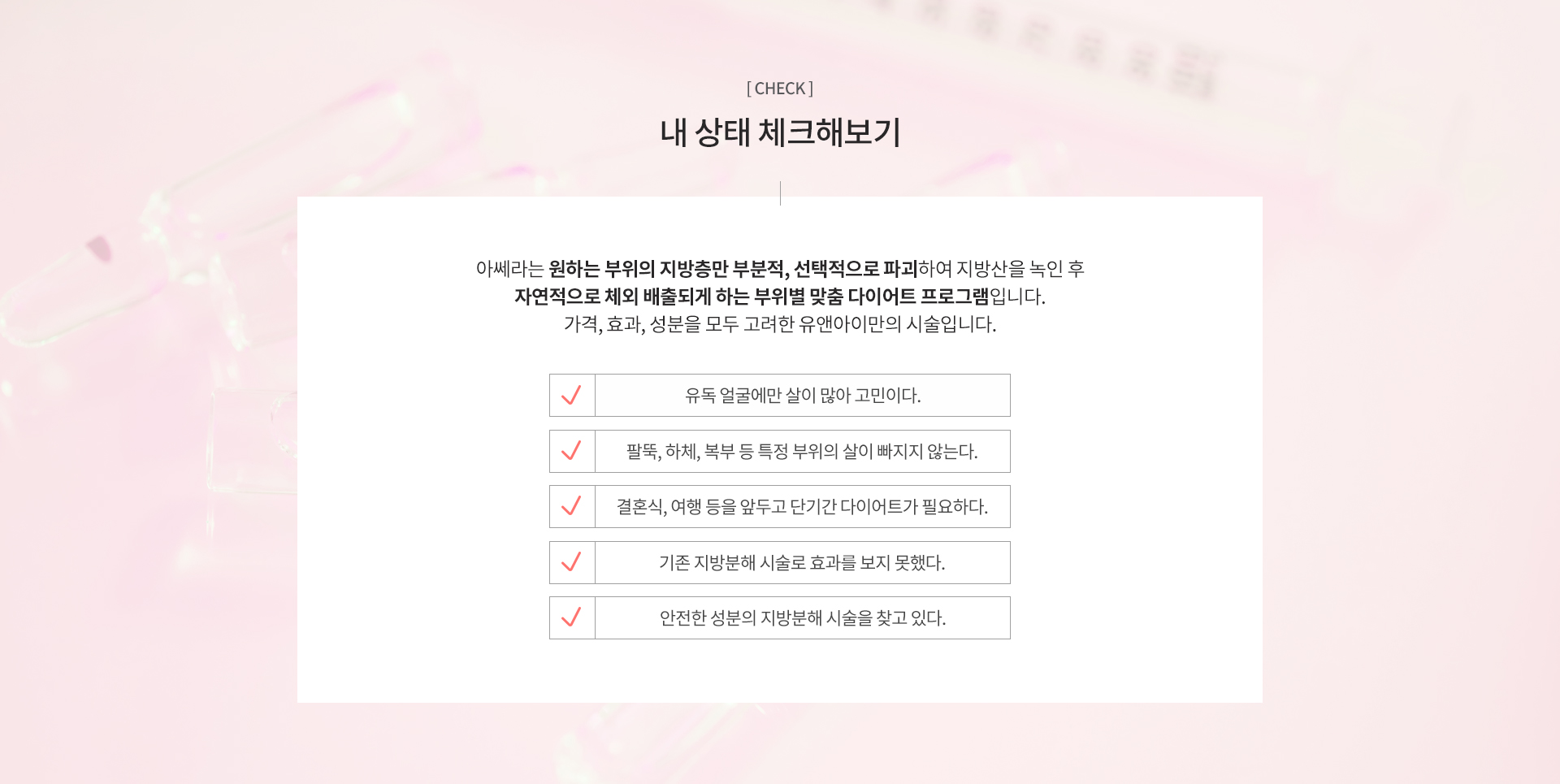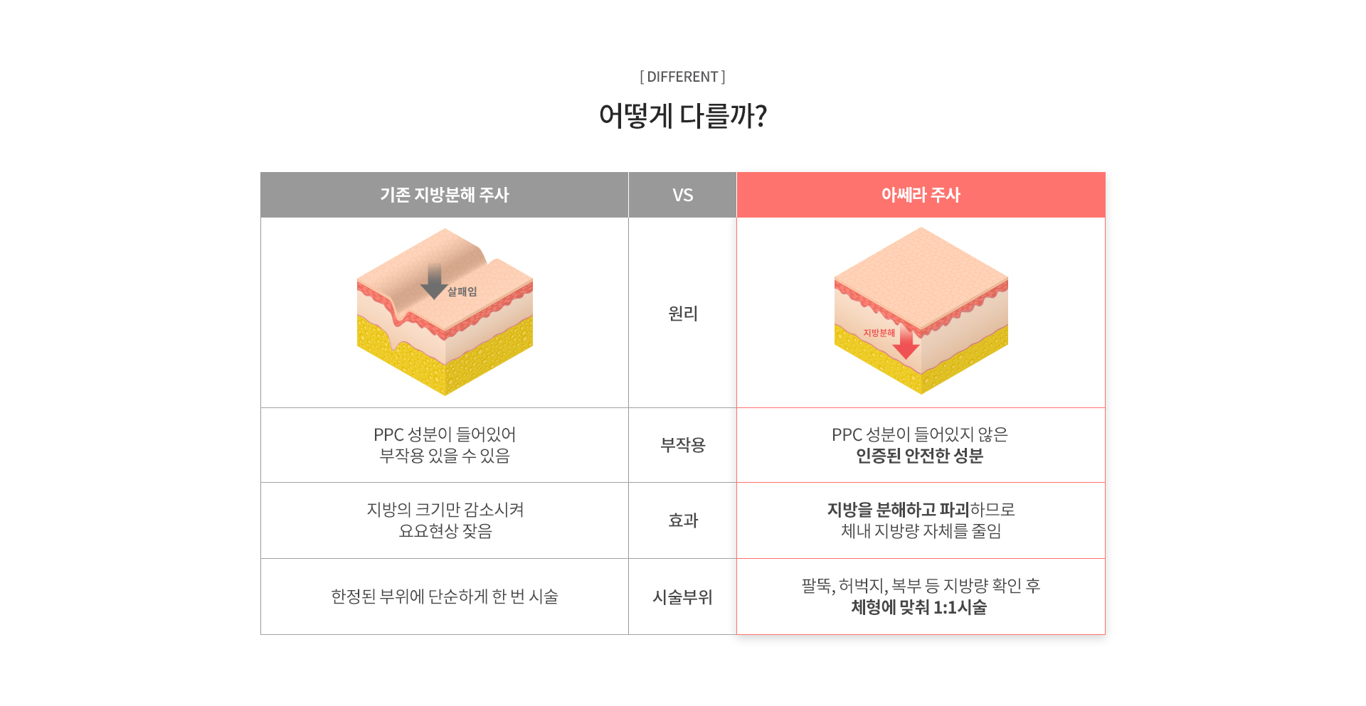 아쎄라는 원하는 부위의 지방층만 선택적으로 파괴하여 자연적으로 체외 배출되게 하는 부위별 맞춤 다이어트 시술입니다.